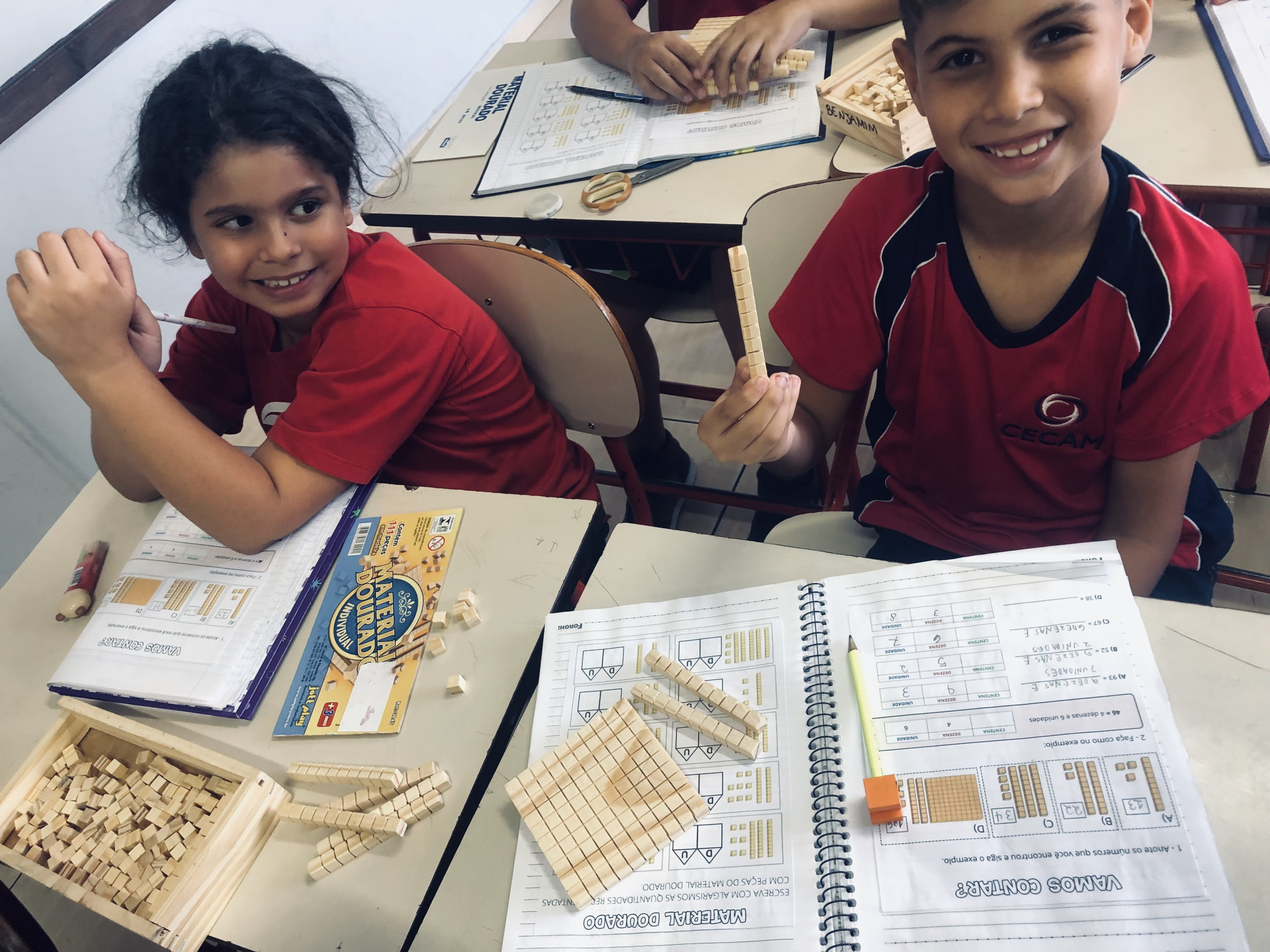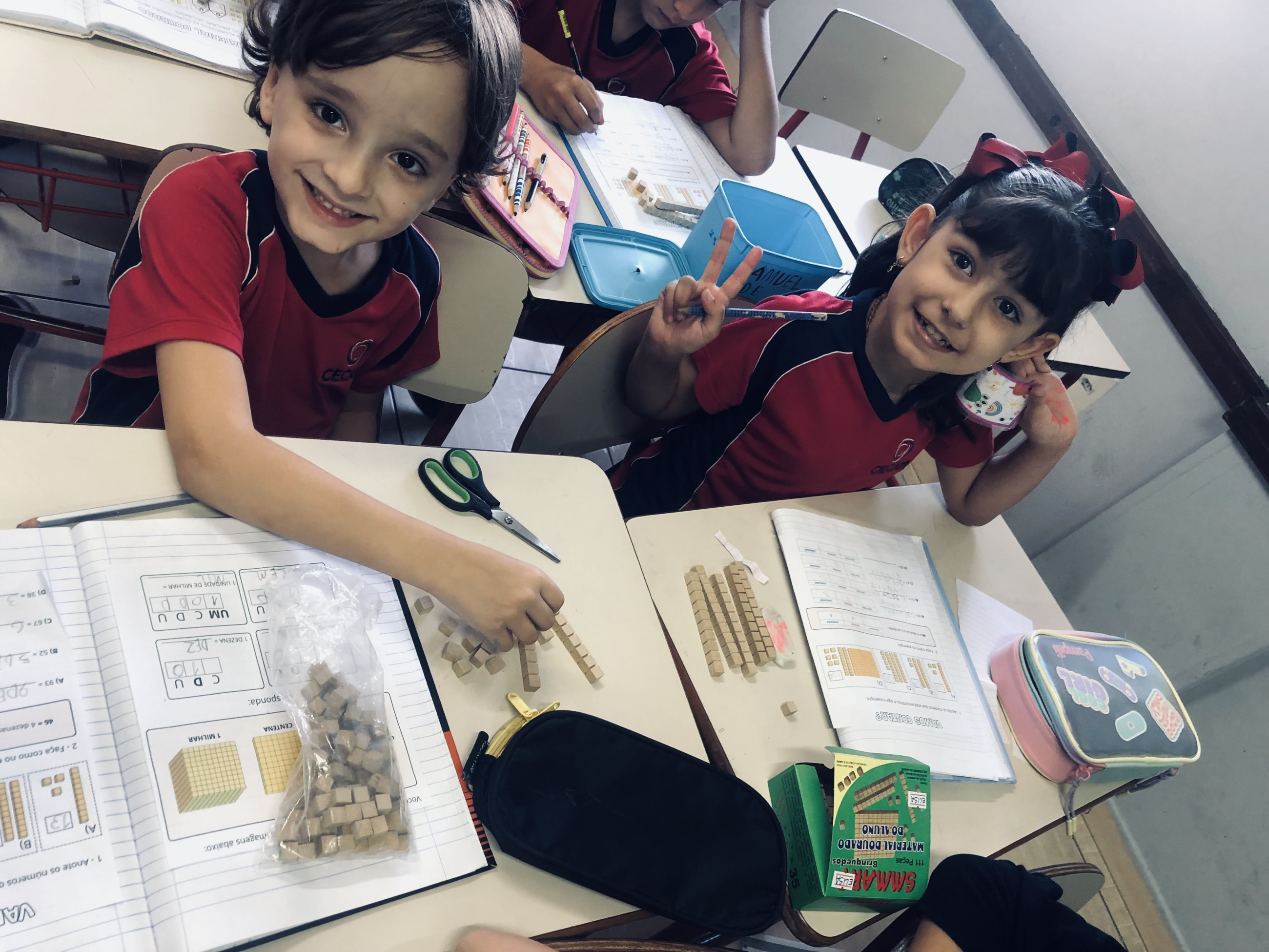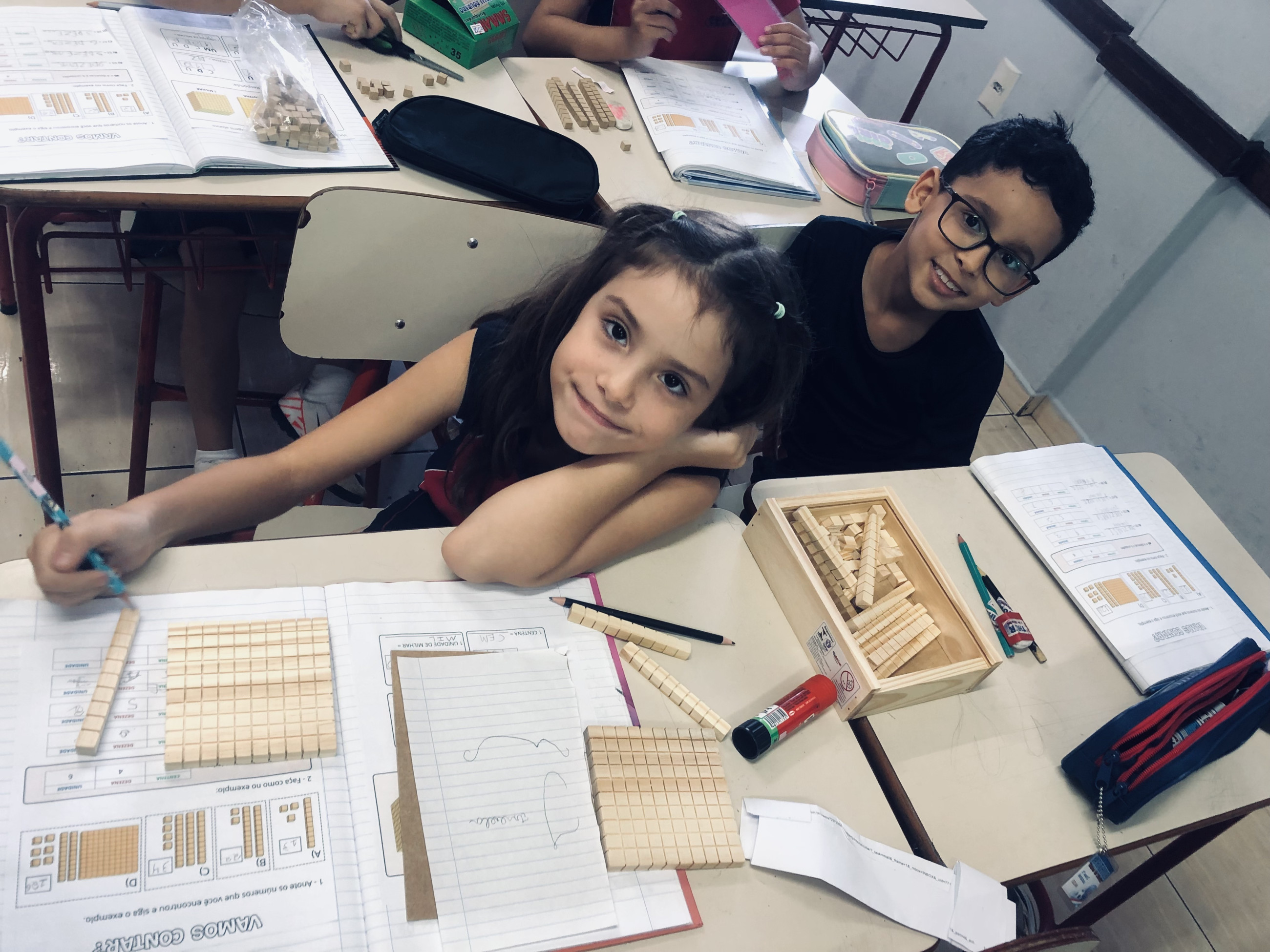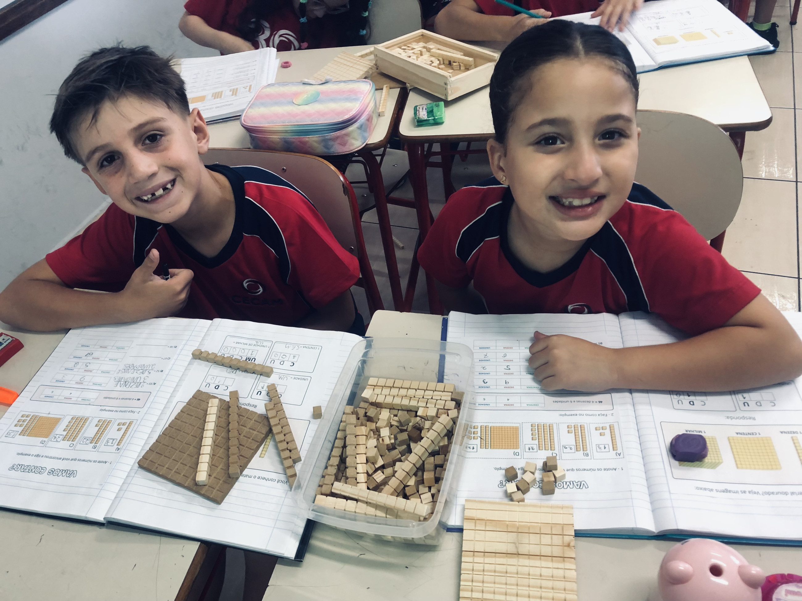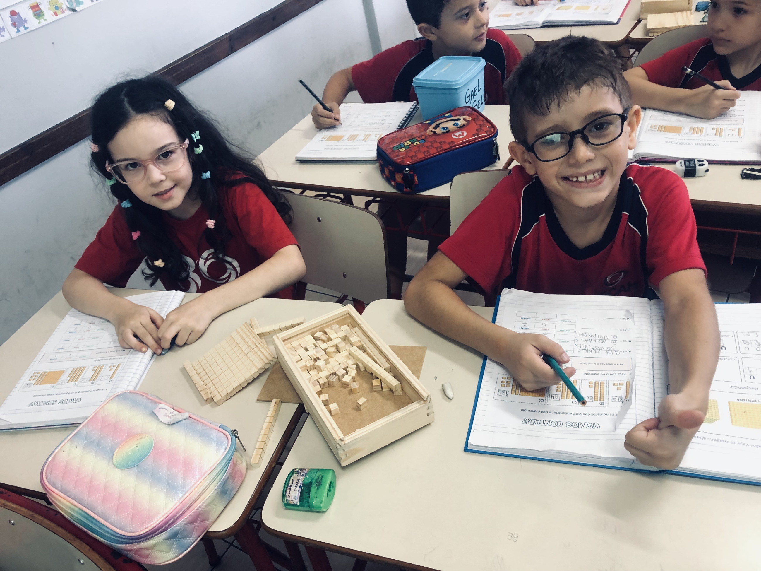 Logo no início, a curiosidade surge: as unidades, as dezenas organizadas em barrinhas e as centenas chamam a atenção e despertam o interesse. Aos poucos, aquilo que parecia abstrato começa a fazer sentido. Os números deixam de ser apenas símbolos e passam a representar algo que podem ver e montar com as próprias mãos.