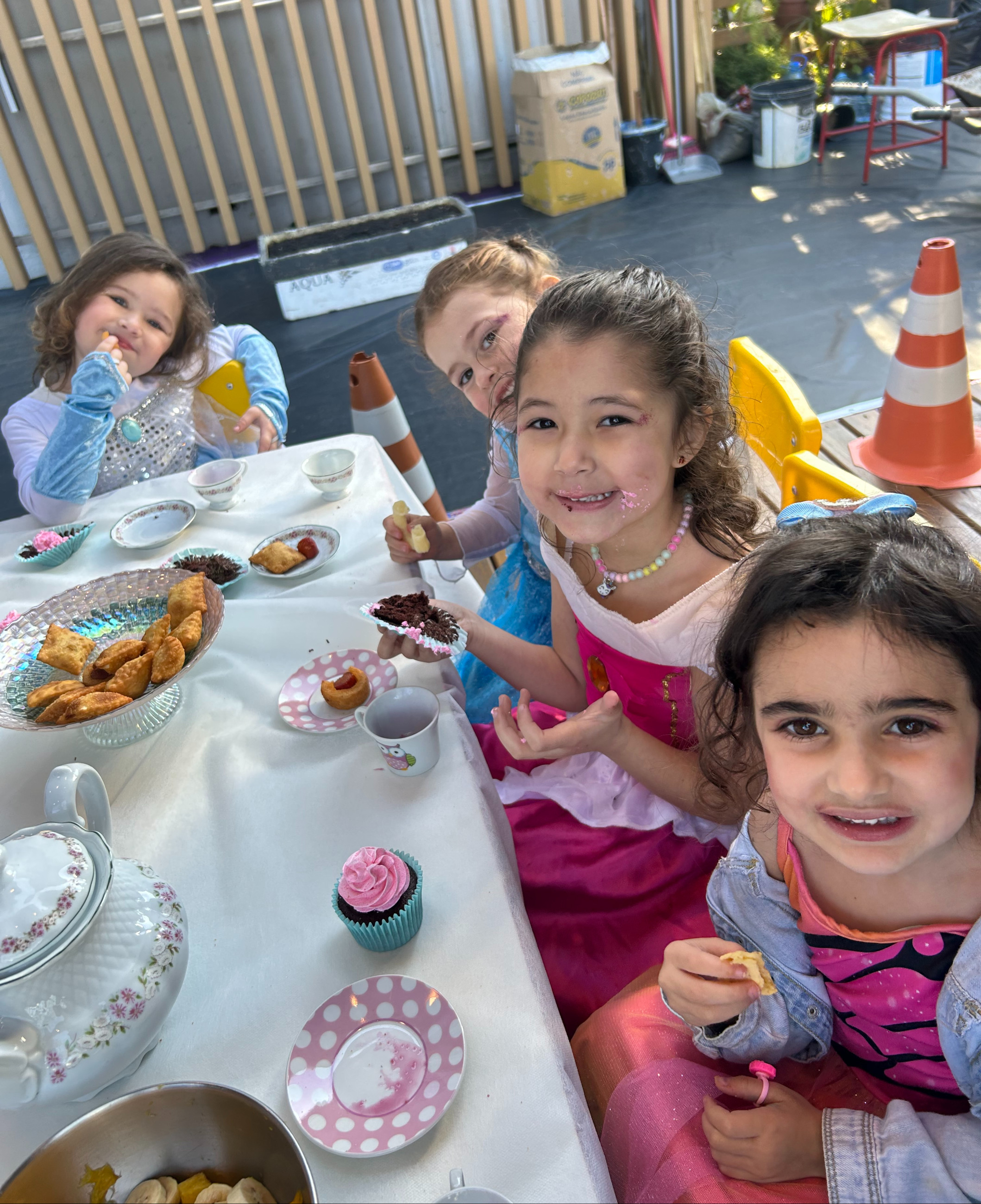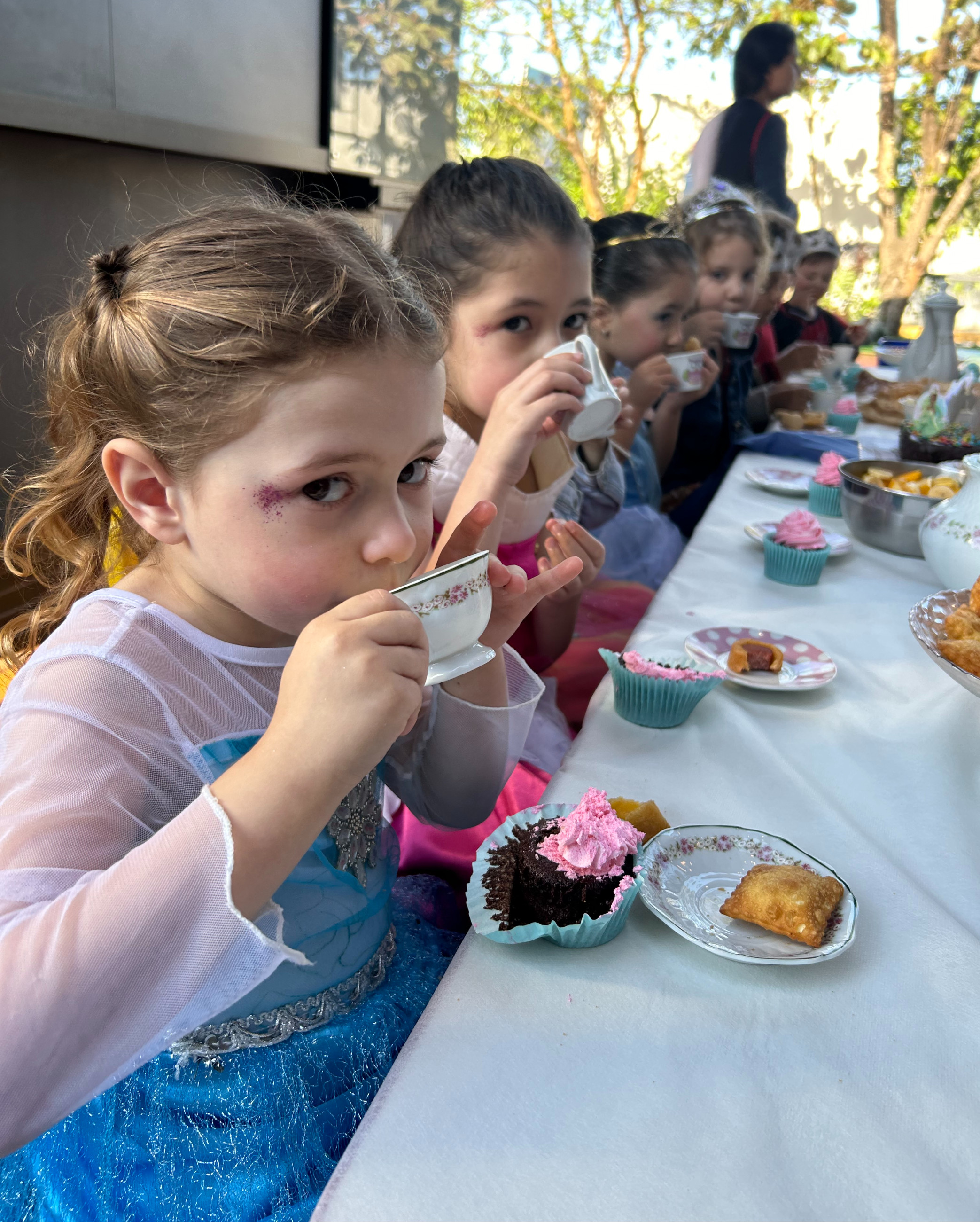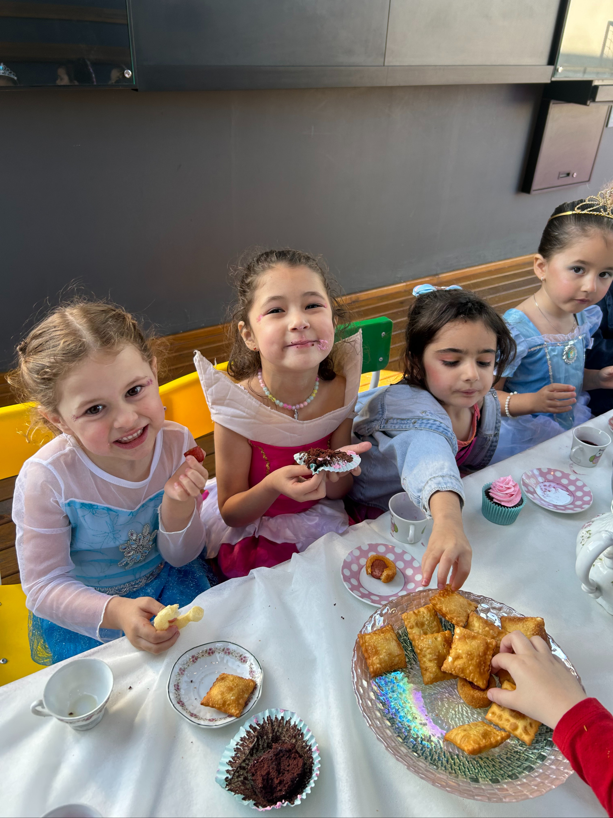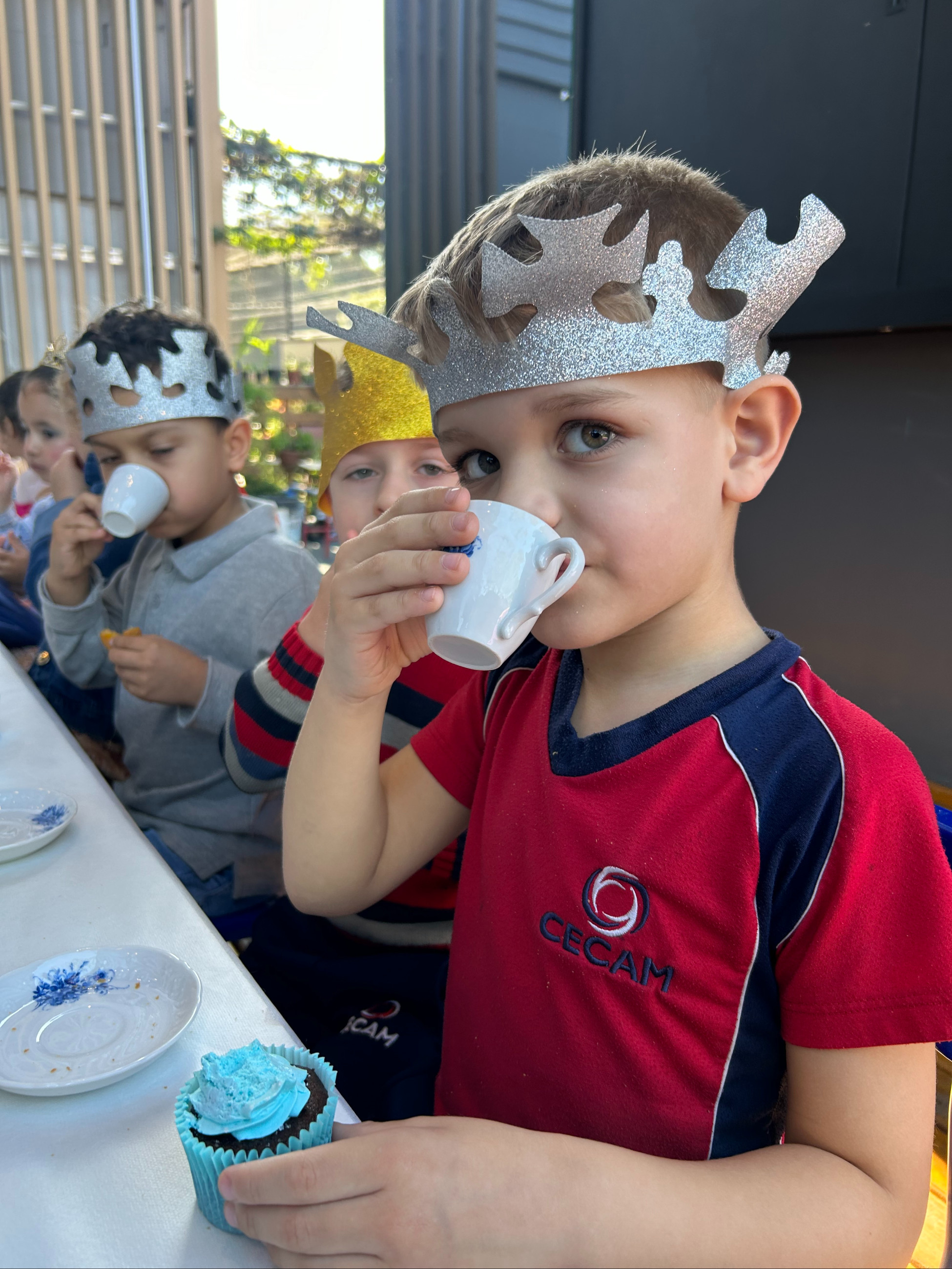 Como encerramento do projeto, nossa turma encenou um chá real, iguais aos de castelos, utilizando louças e elementos que tornassem mais parecidos com de príncipes e princesas. Cada criança veio com a roupa ou acessório semelhante aos da realeza e um trouxeram seu prato favorito, suco e até chá. Foi um momento mágico, cheio de risos, brilho nos olhos e muitas memórias afetivas.