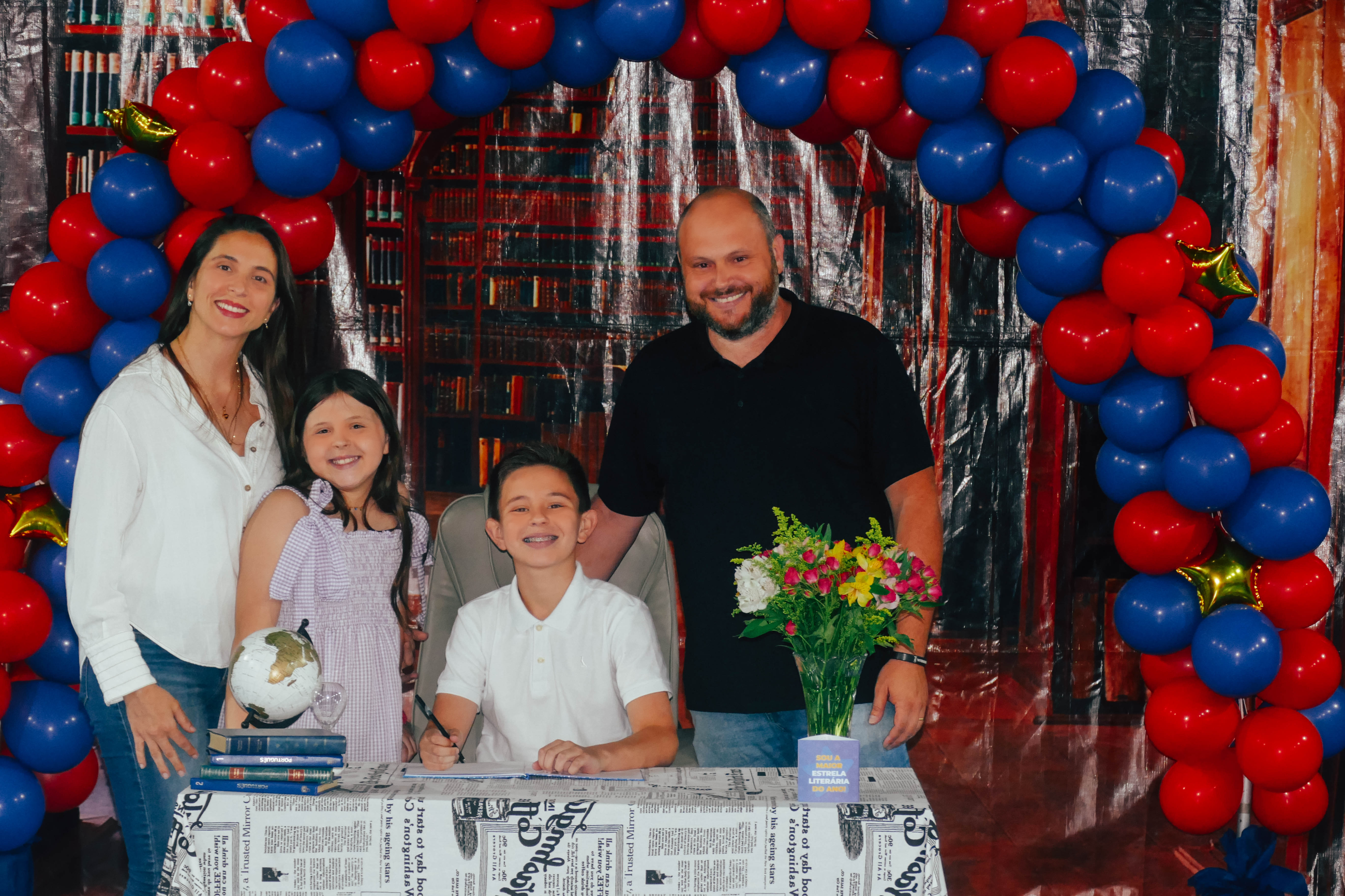 As crianças escreveram e ilustraram seus próprios livros durante as aulas, e seus desenhos também ganharam vida em um game personalizado. A família incentivou enviando a biografia da estrela literária e comprando os livros físicos para serem autografados.