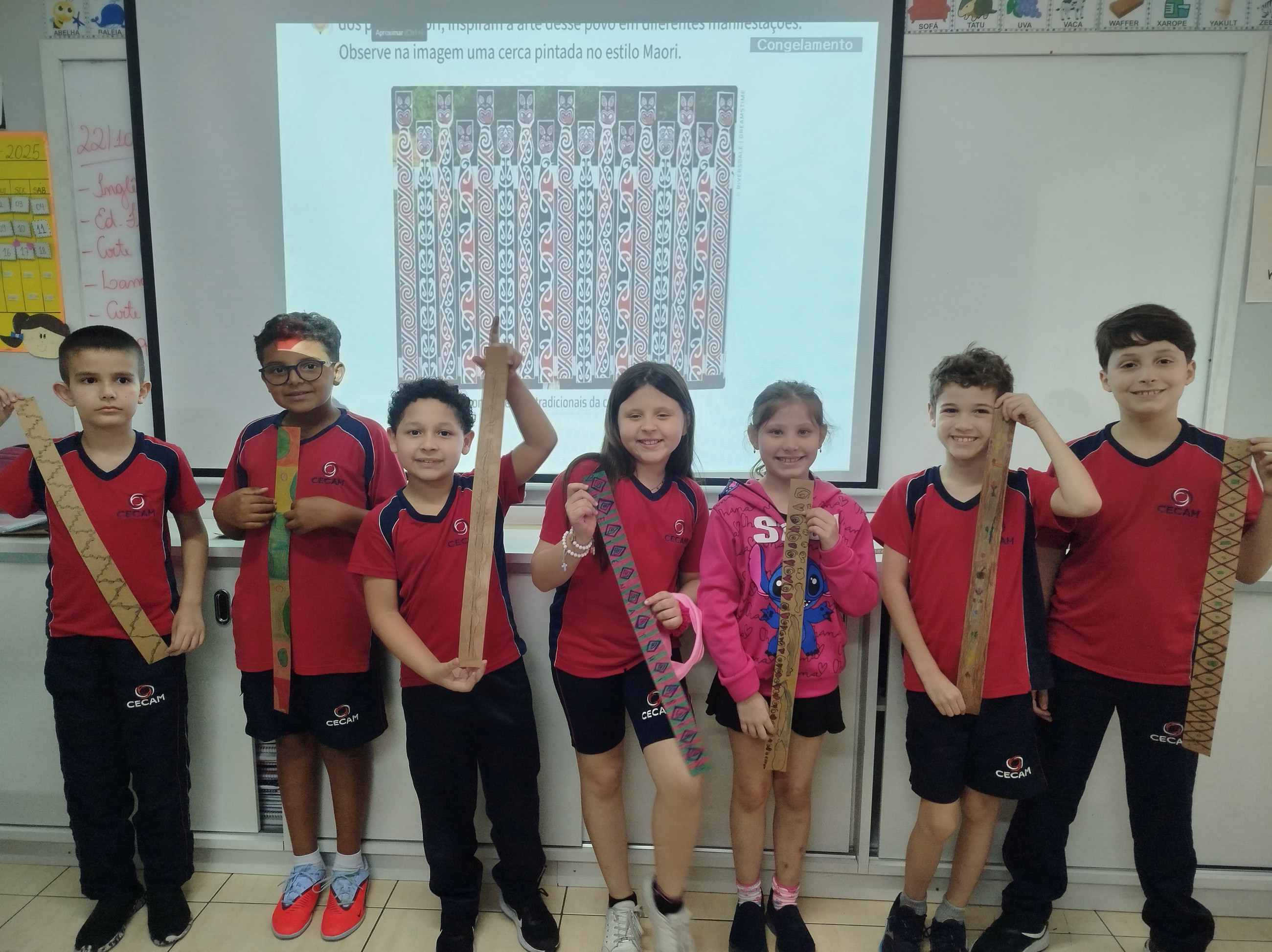 Povo geograficamente muito distante de nosso país, mas com marcas culturais e históricas tão semelhantes! Estudamos uma de suas manifestações culturais mais conhecidas: o haka, uma dança cerimonial praticada pelos povos indígenas Maori e sobre o rúgbi, esporte, muito tradicional da Nova Zelândia, assim como o futebol é tradicional no Brasil.