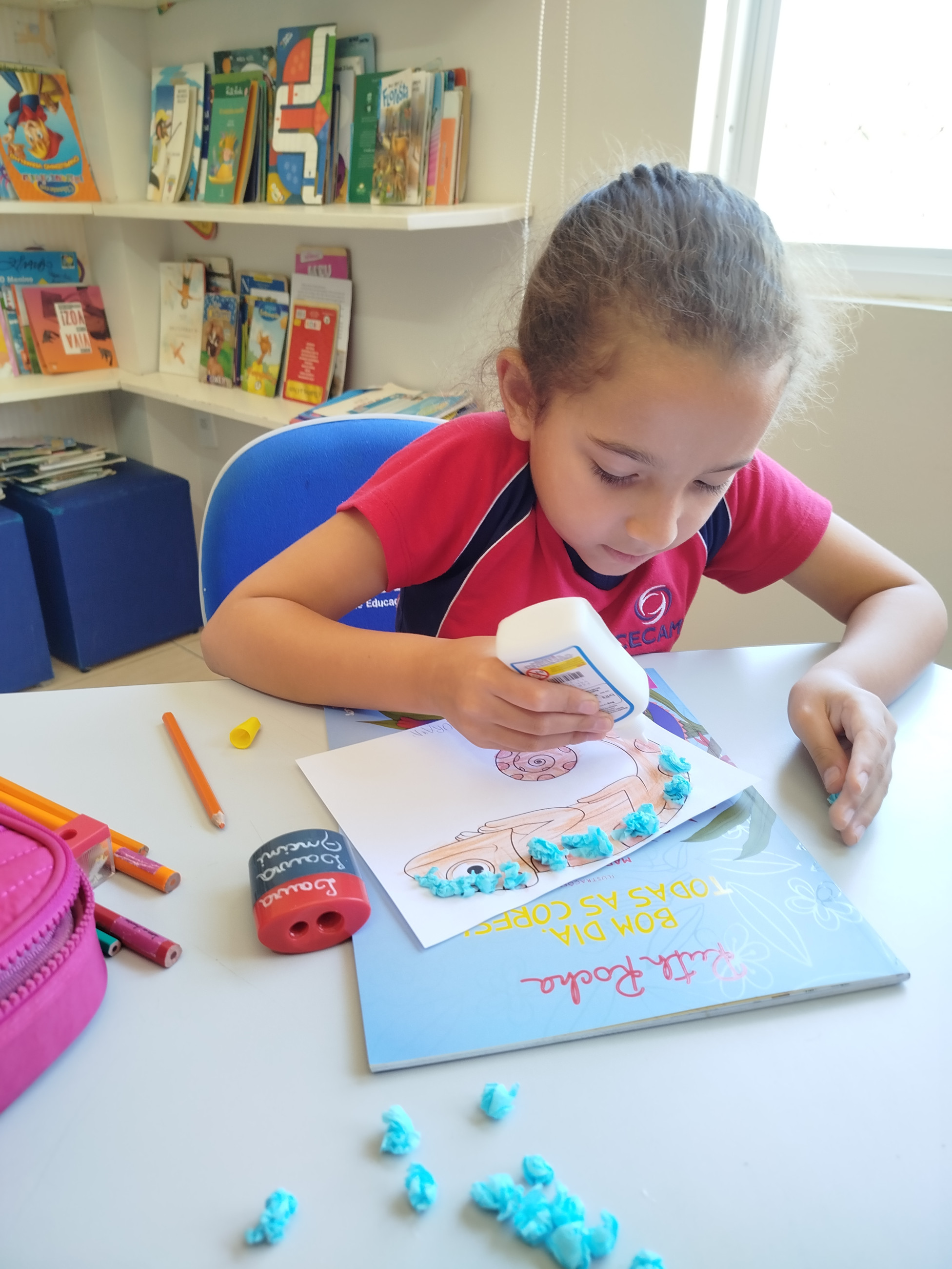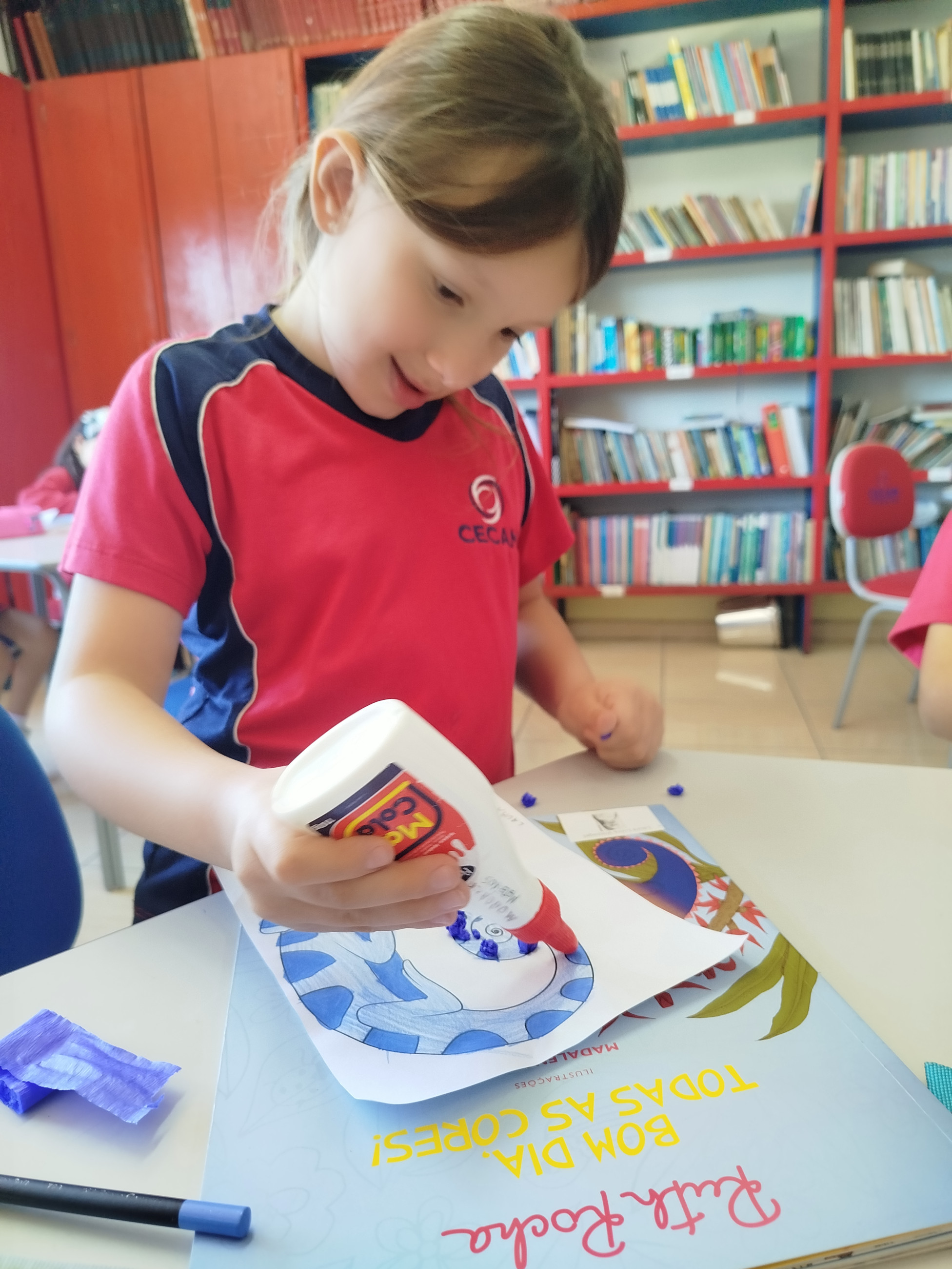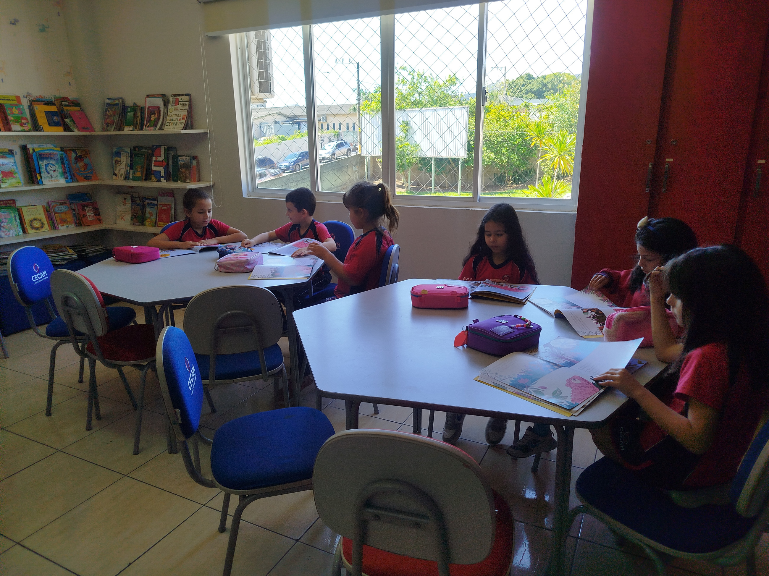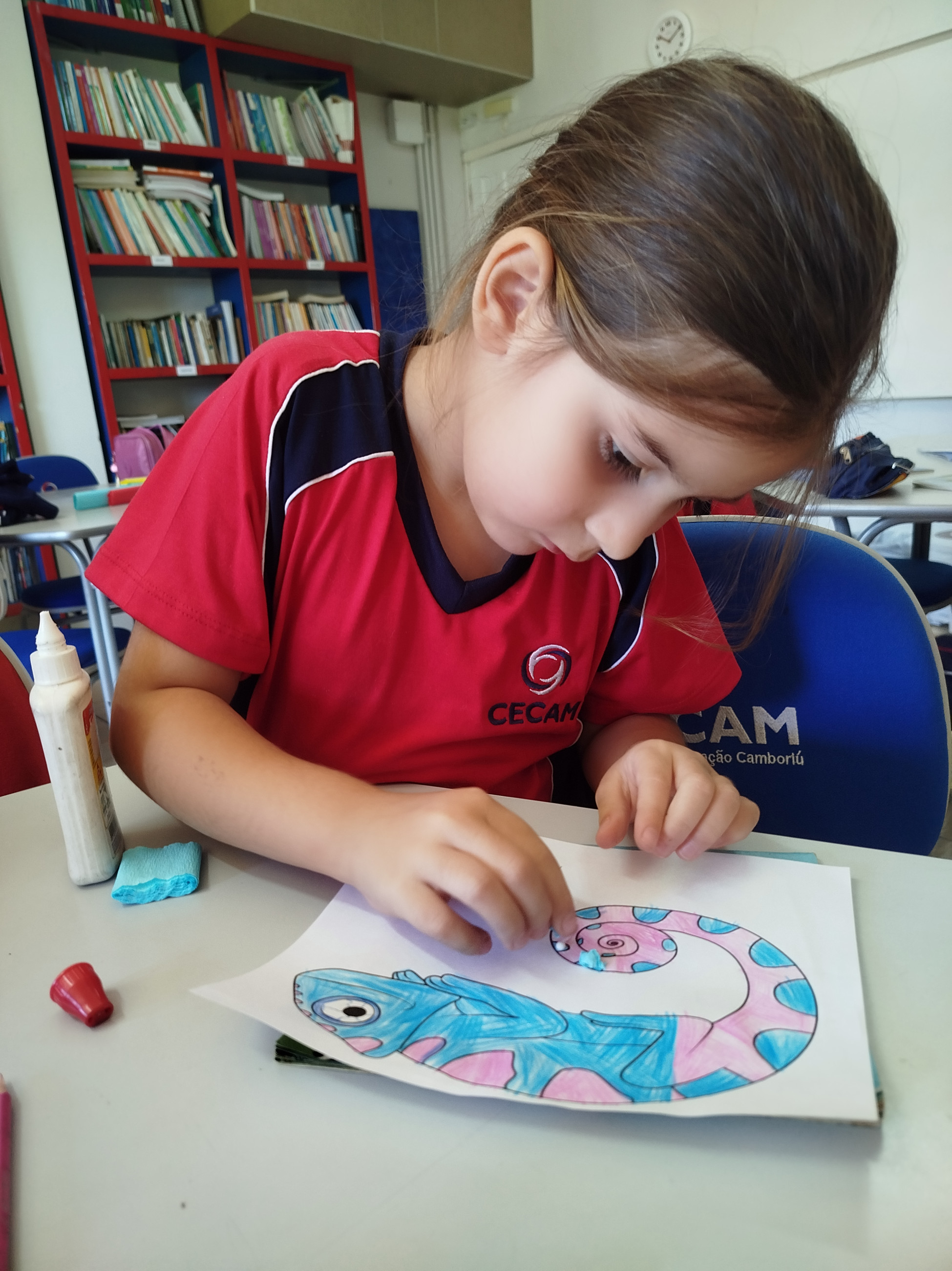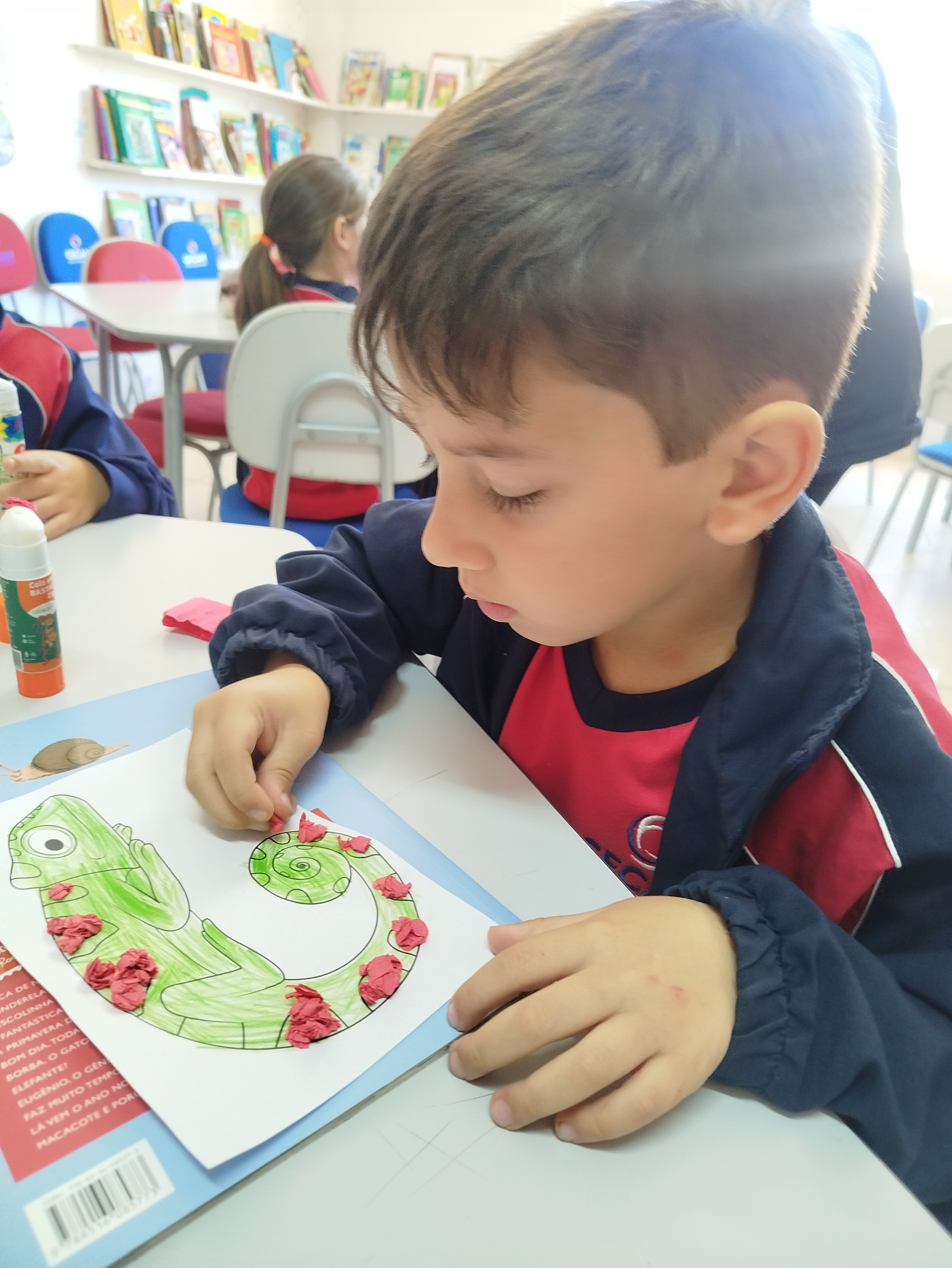 Realizamos a leitura em diferentes lugares da escola, aproveitamos o sol, fomos a biblioteca, o no meio da leitura sempre realizamos uma atividade relacionada ao tema do livro. O livro que trabalhamos nesta vez foi o bom dia todas as cores de Ruth Rocha, entregamos a cada aluno um desenho de camaleão para que pintassem da sua cor preferida e depois fizessem um cenário para ele se camuflar.