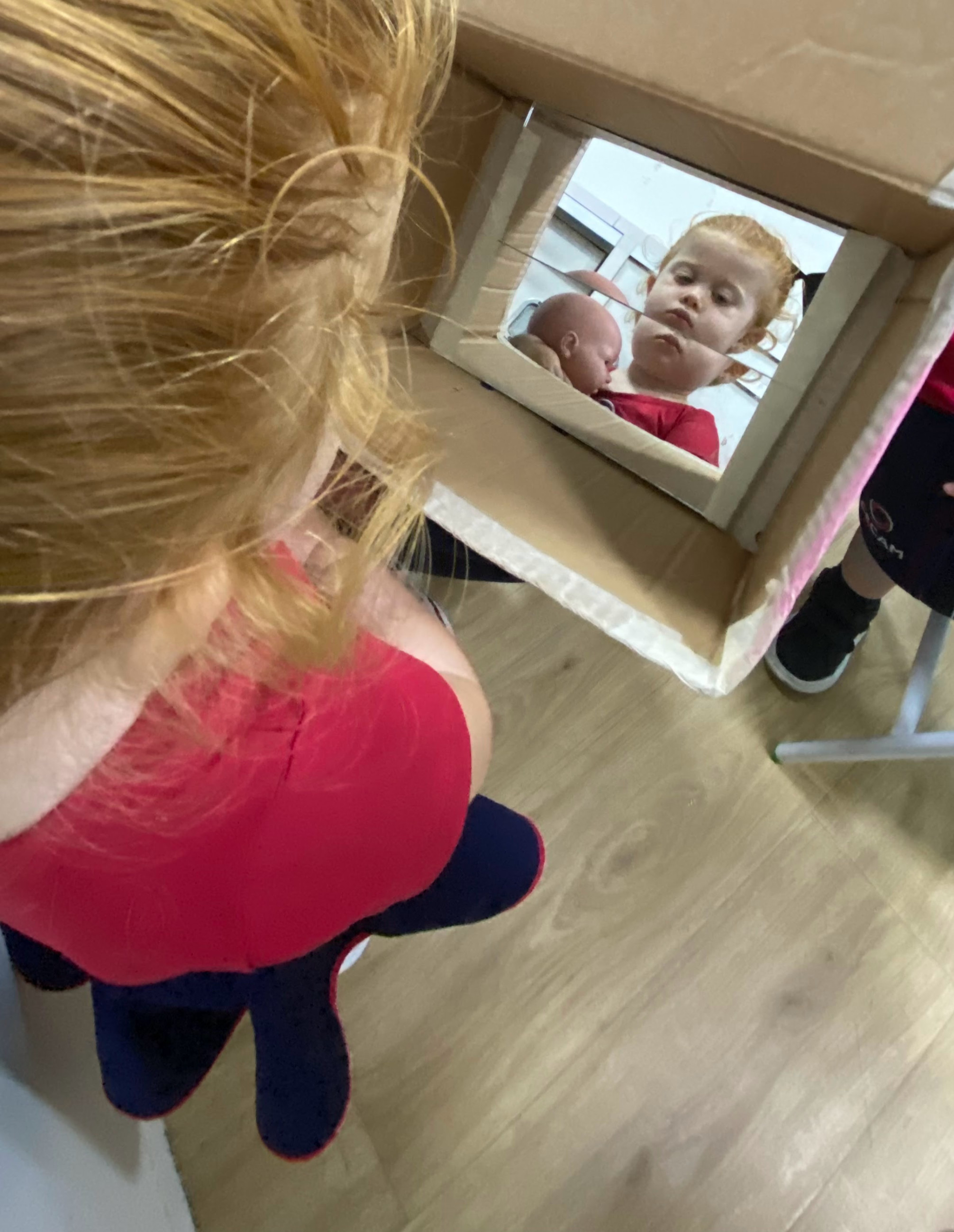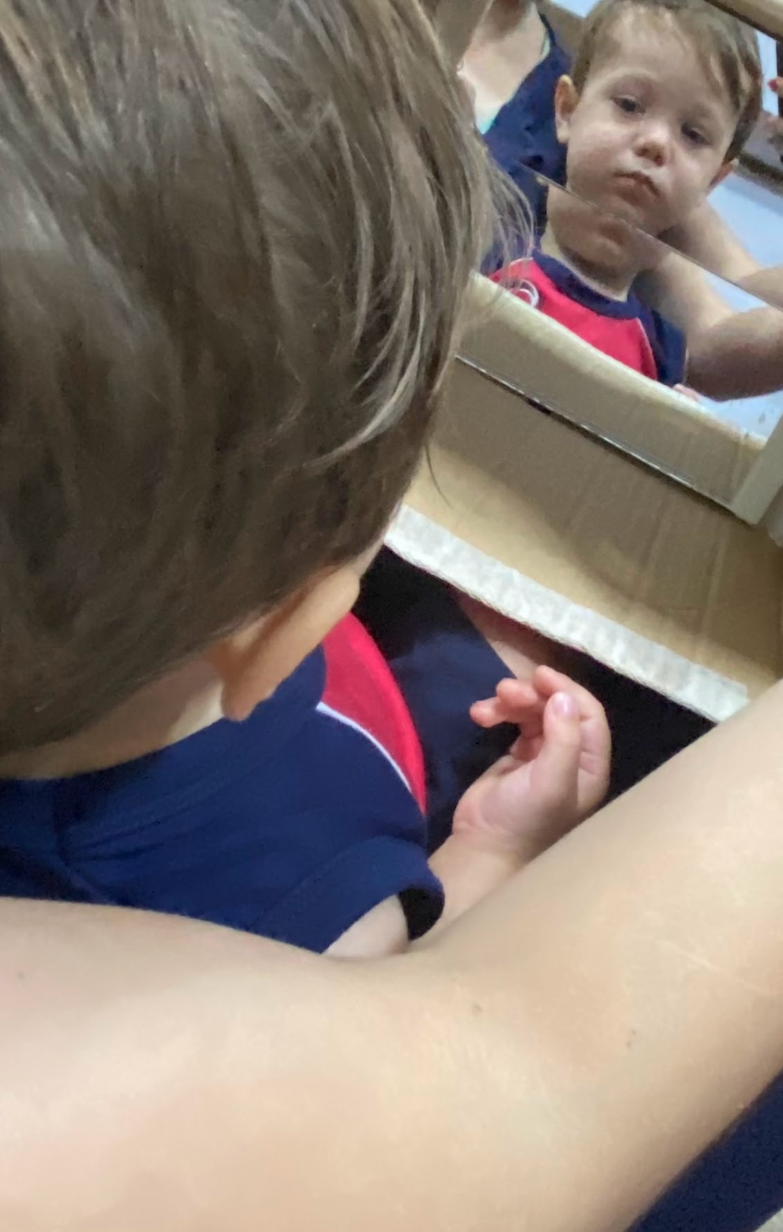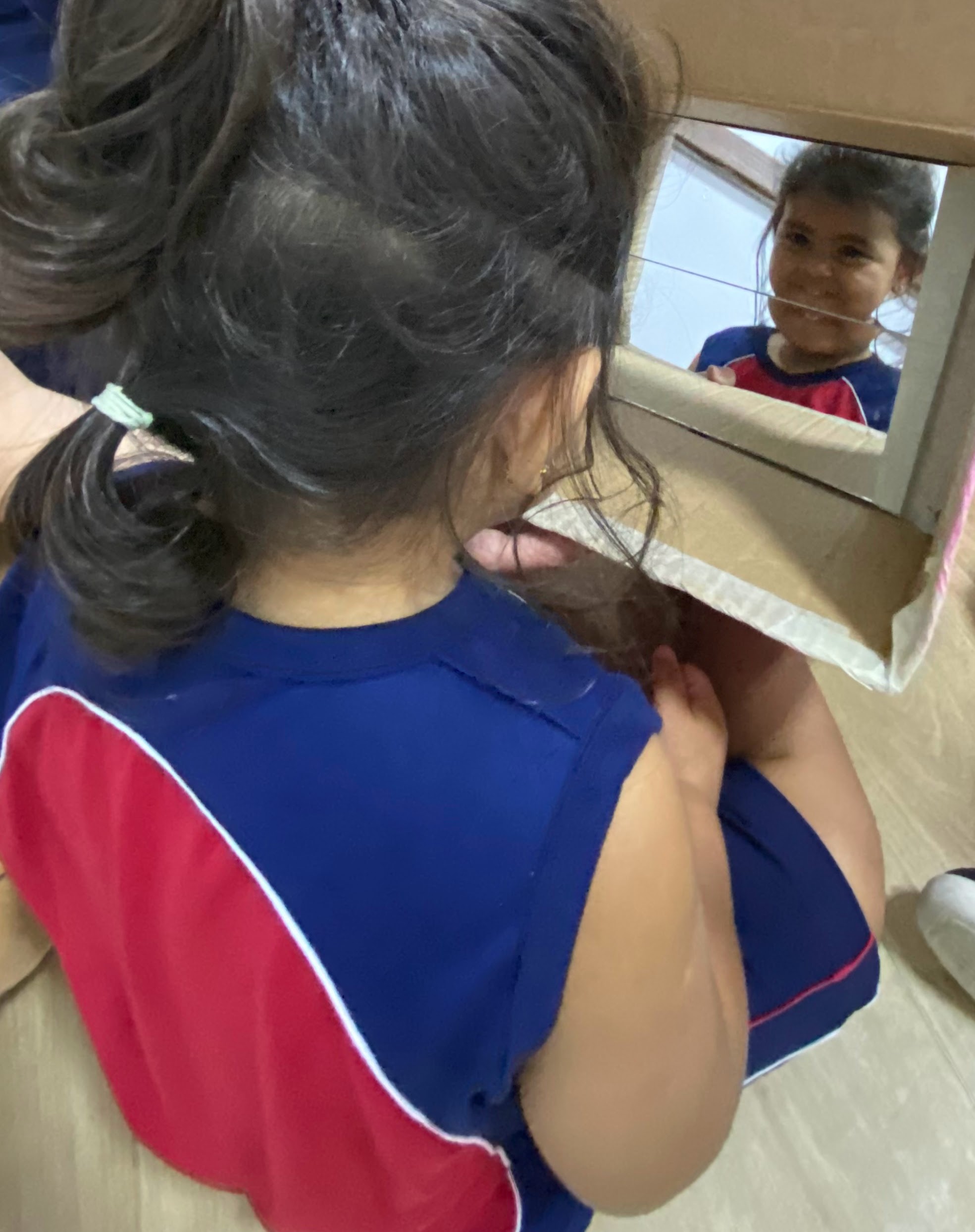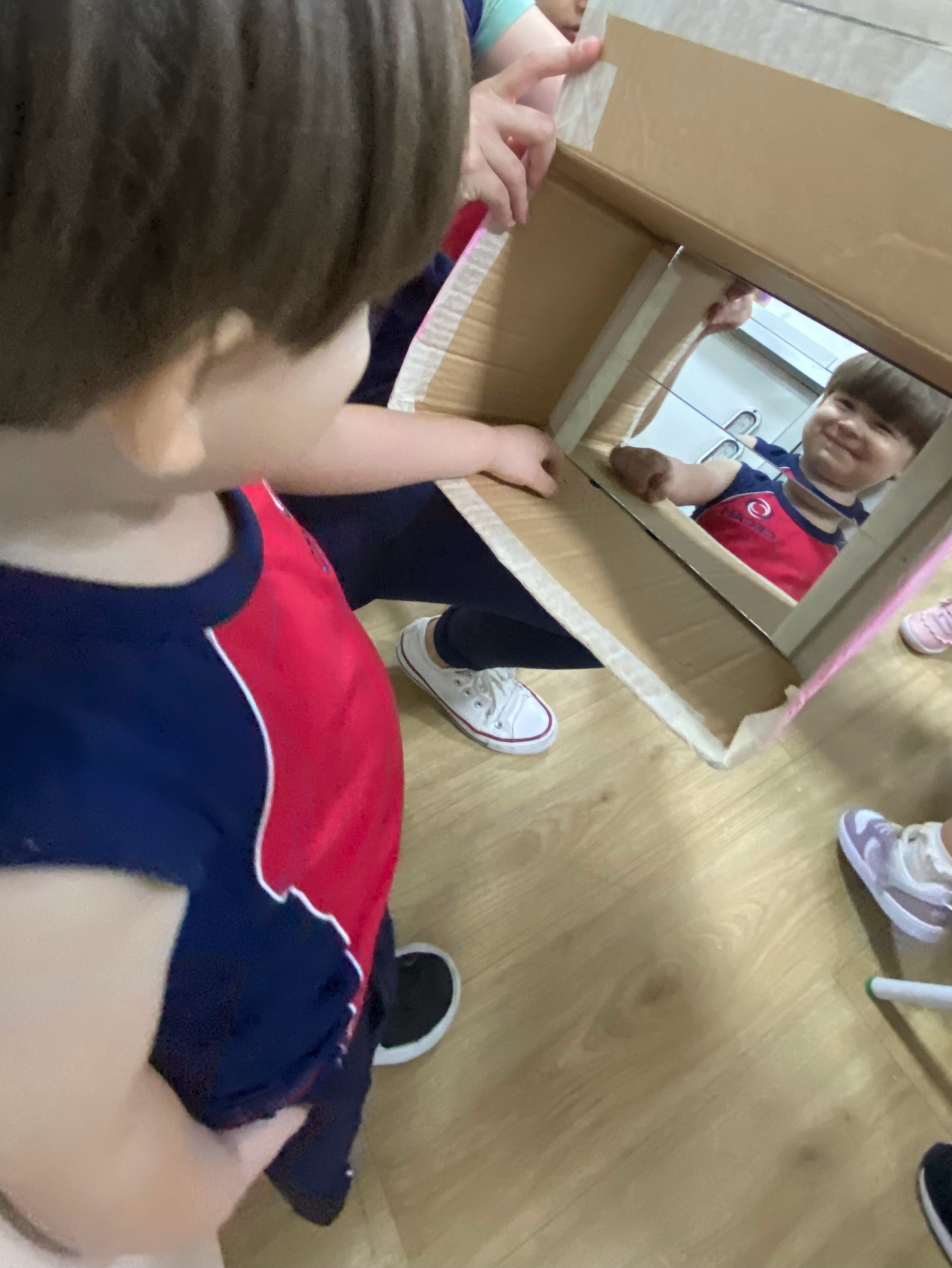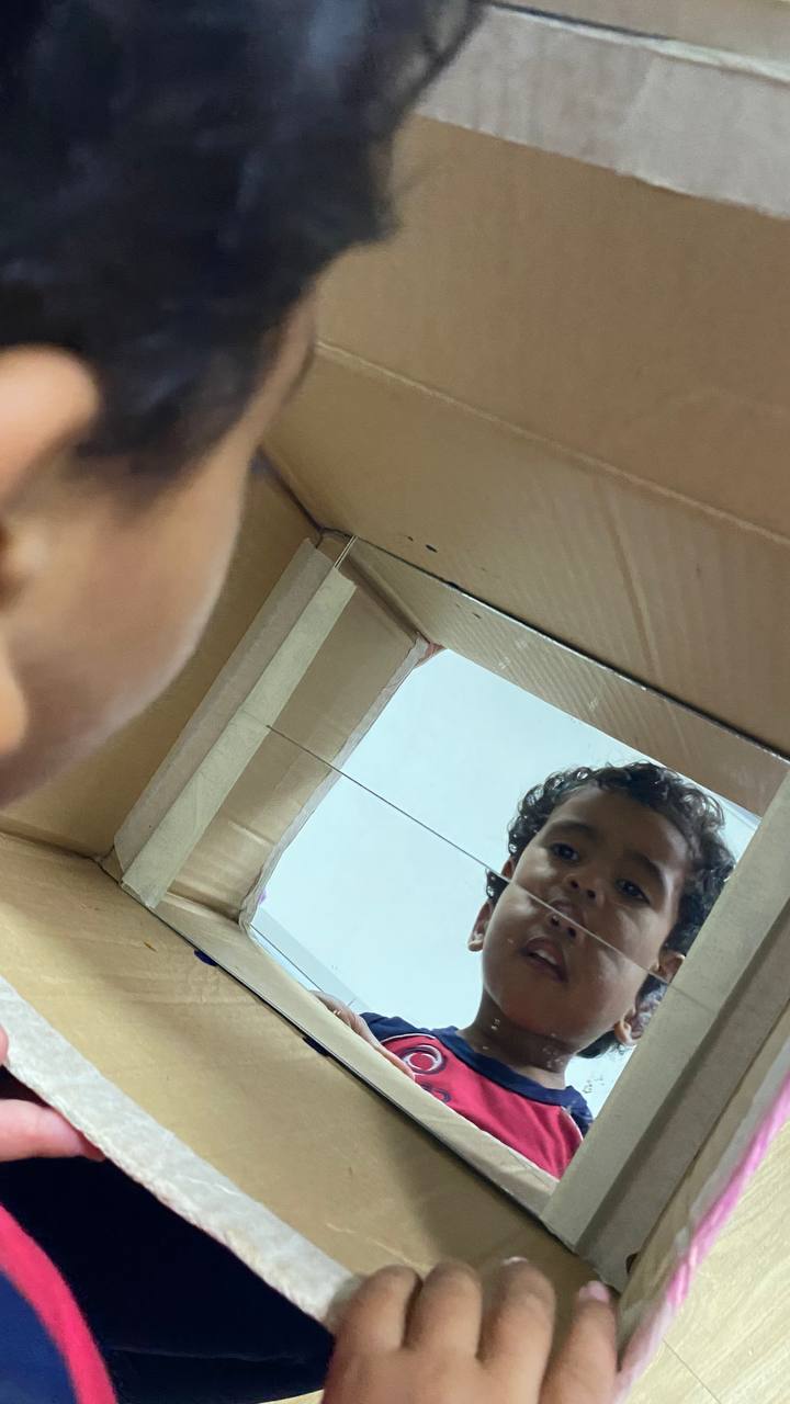 Na última semana, as crianças do Maternal II vivenciaram uma experiência mágica e reveladora: a Caixa Dinâmica com Espelho. Mais do que uma brincadeira, essa proposta pedagógica foi cuidadosamente planejada para convidar os pequenos a um primeiro e importante encontro consigo mesmos.