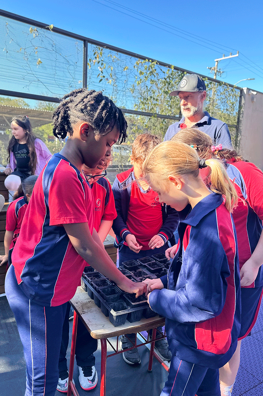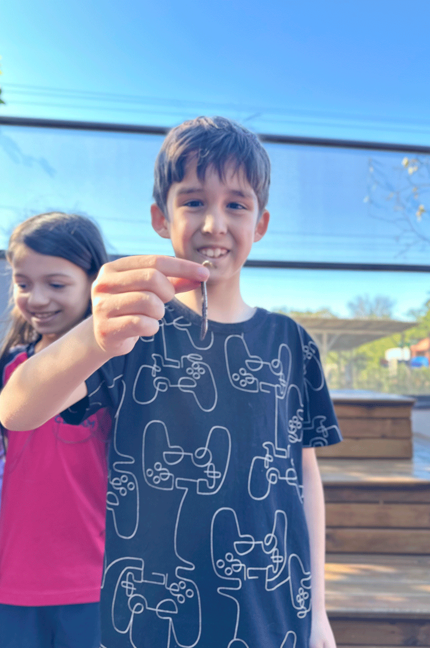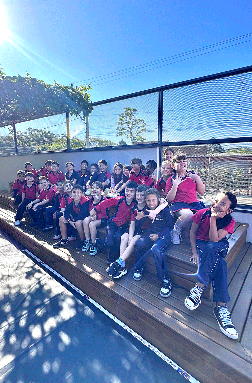 Logo ao chegar, todos estavam animados e curiosos para colocar a mão na terra. A professora explicou que a primavera é a estação do florescimento, quando a natureza se renova, os dias ficam mais ensolarados e os jardins ganham ainda mais cores. Nada melhor do que dar início a essa fase semeando uma flor tão alegre e radiante como o girassol.