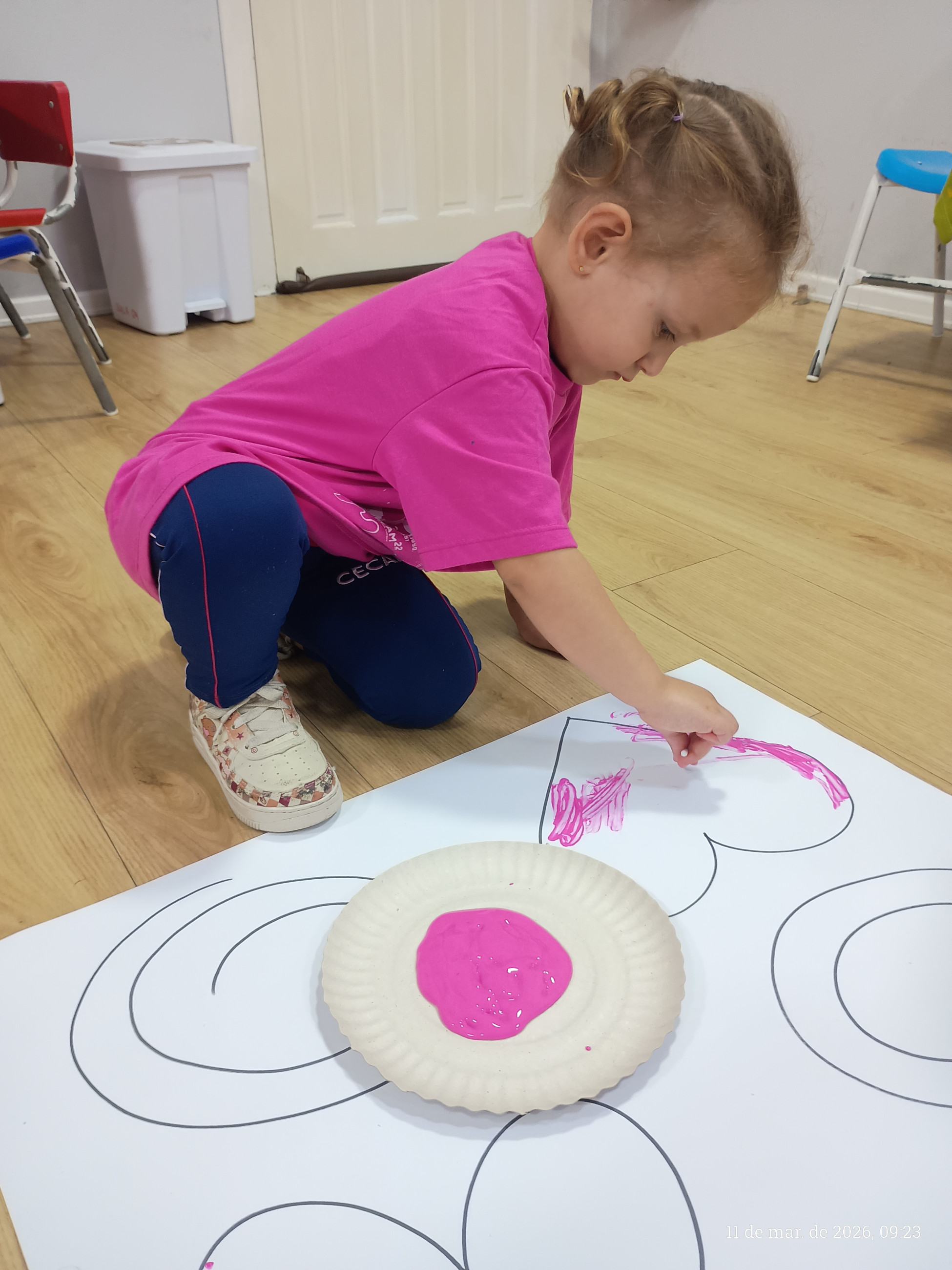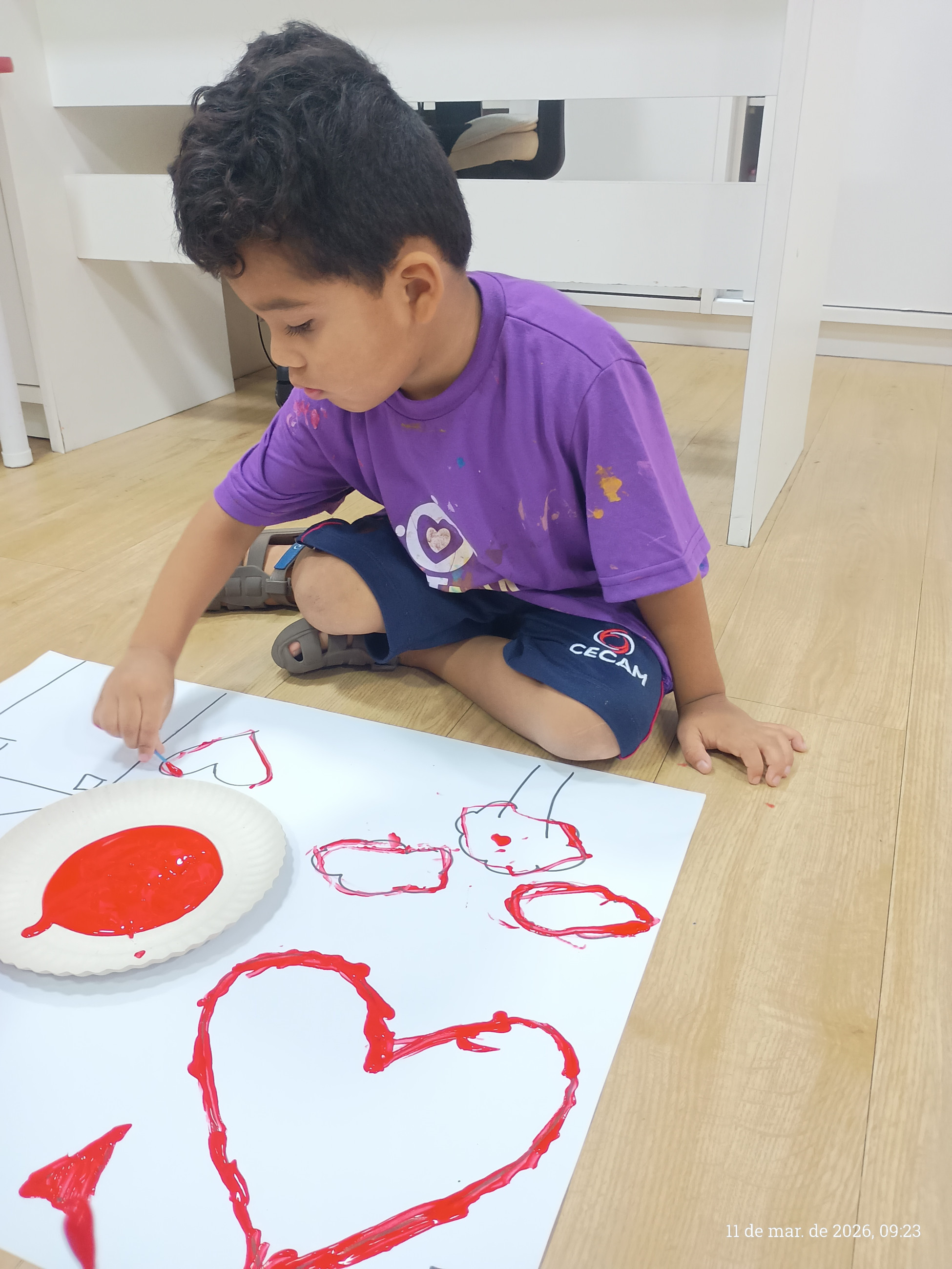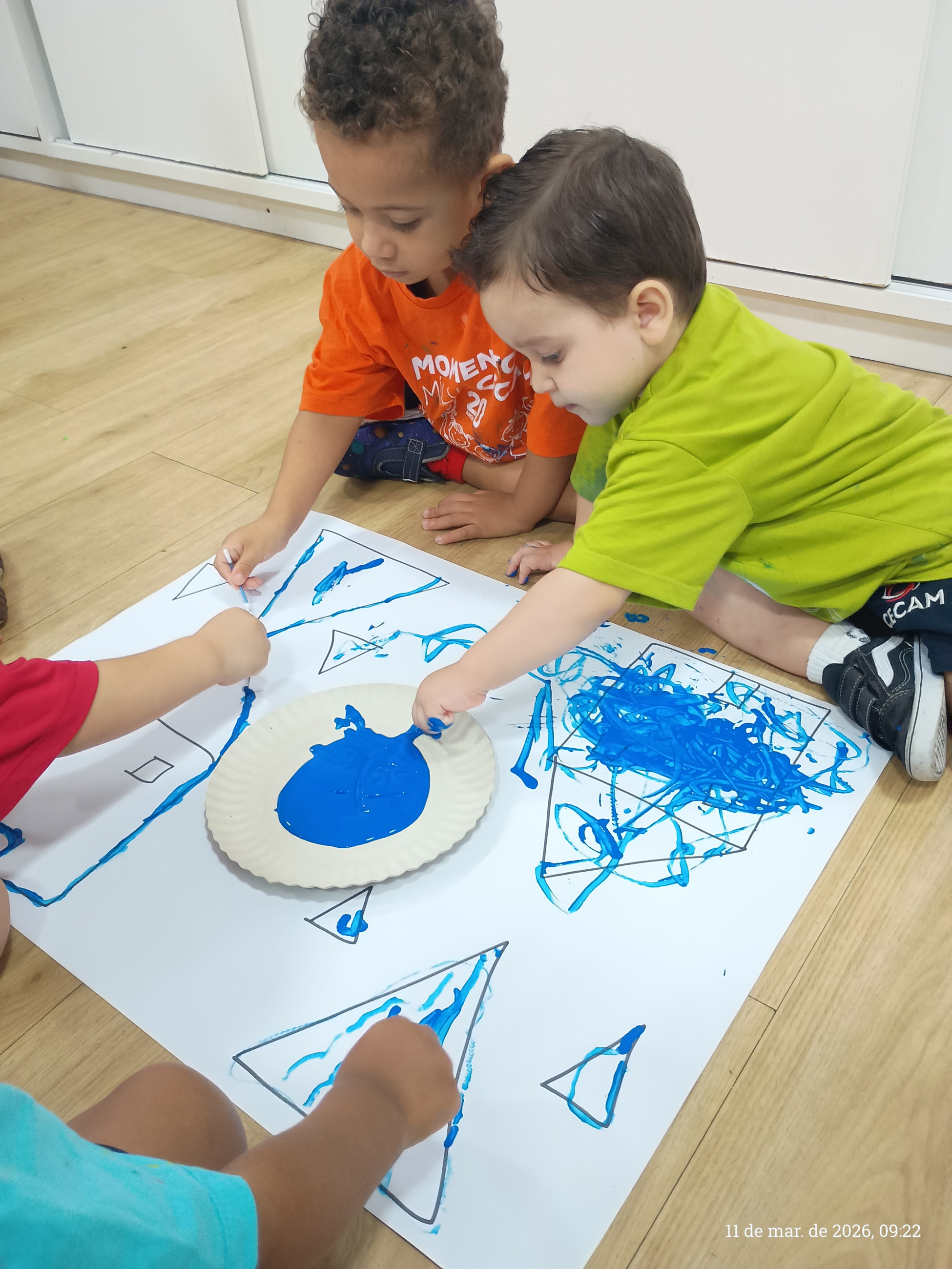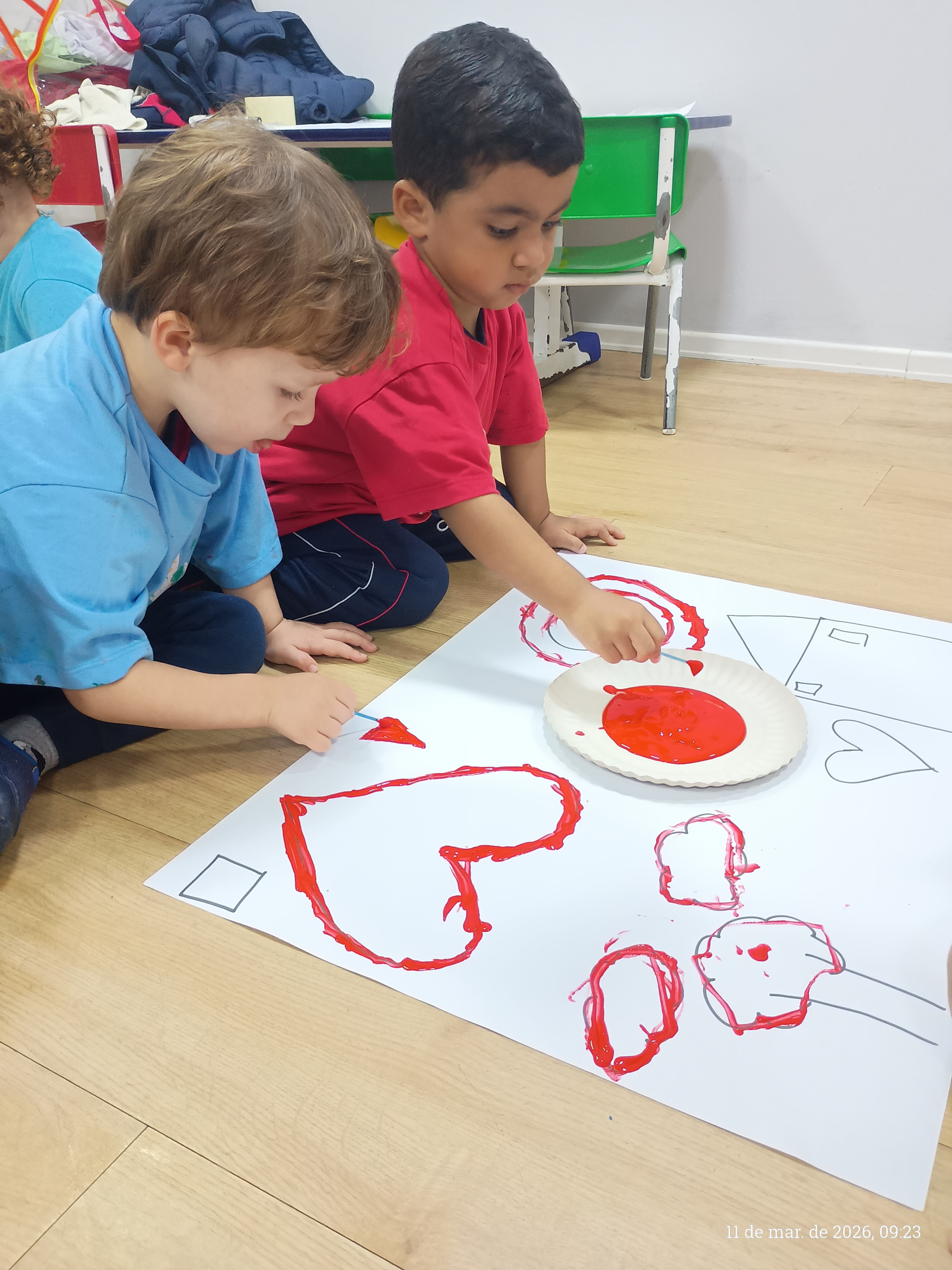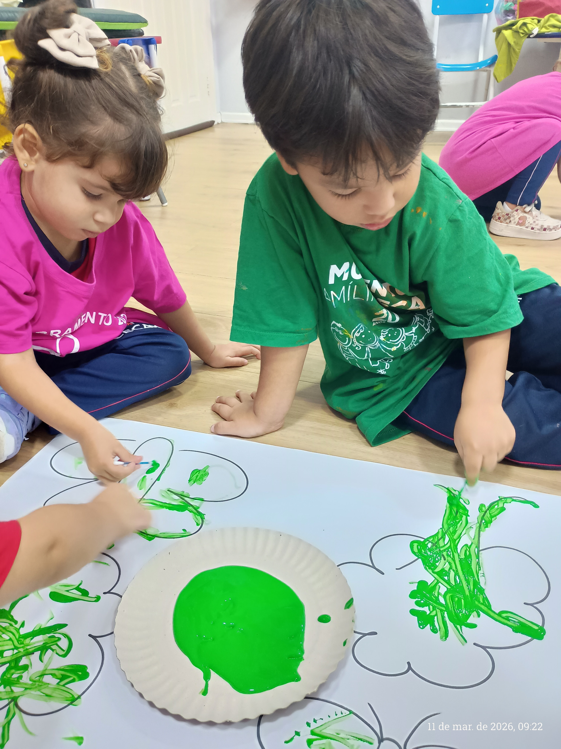 A turma do integral participou de uma atividade pedagógica especialmente pensada para estimular o desenvolvimento motor e a criatividade das crianças. A proposta consistiu em seguir os traços previamente desenhados pela professora em uma cartolina, utilizando cotonetes e tinta guache como principais ferramentas.
