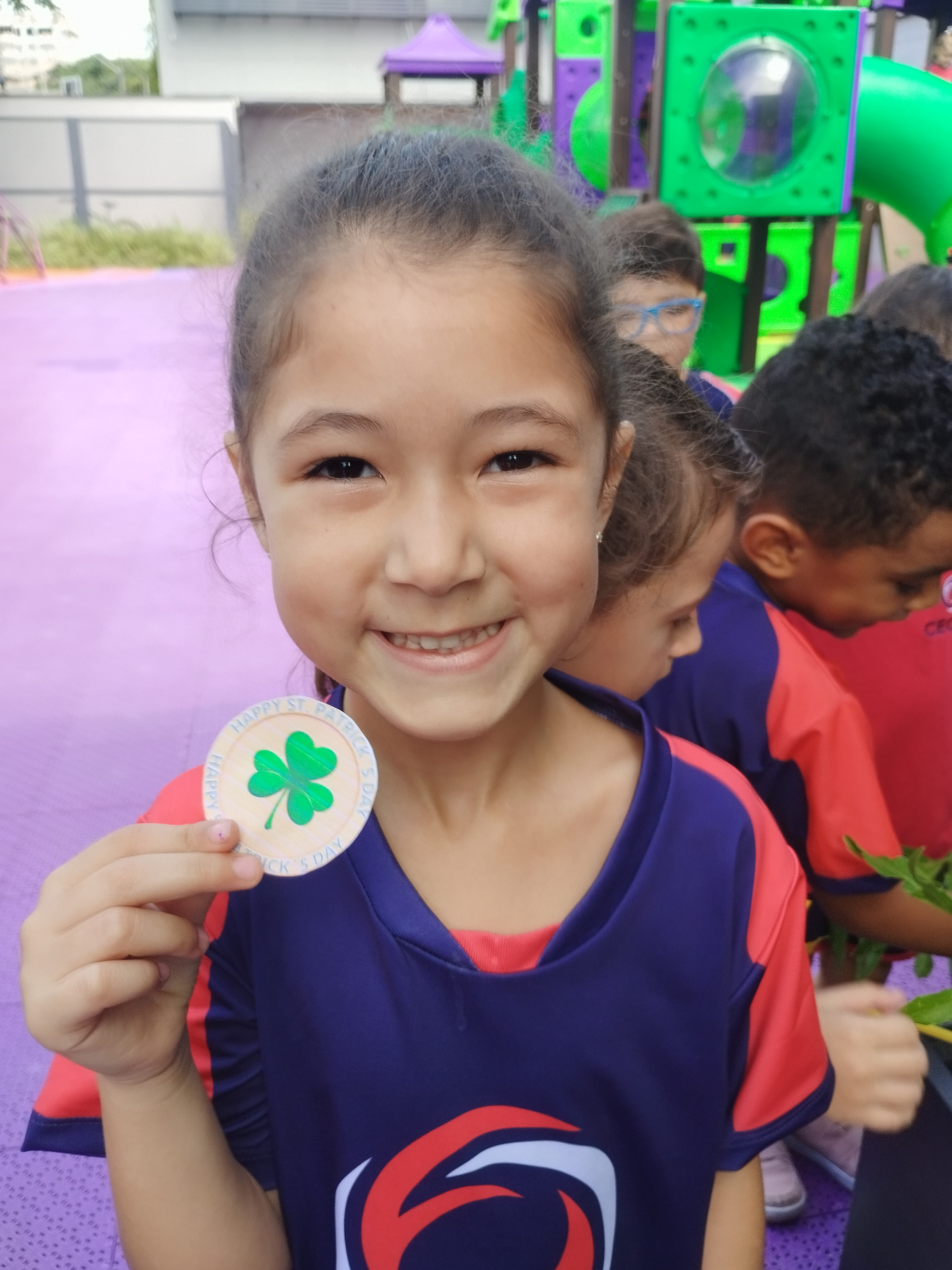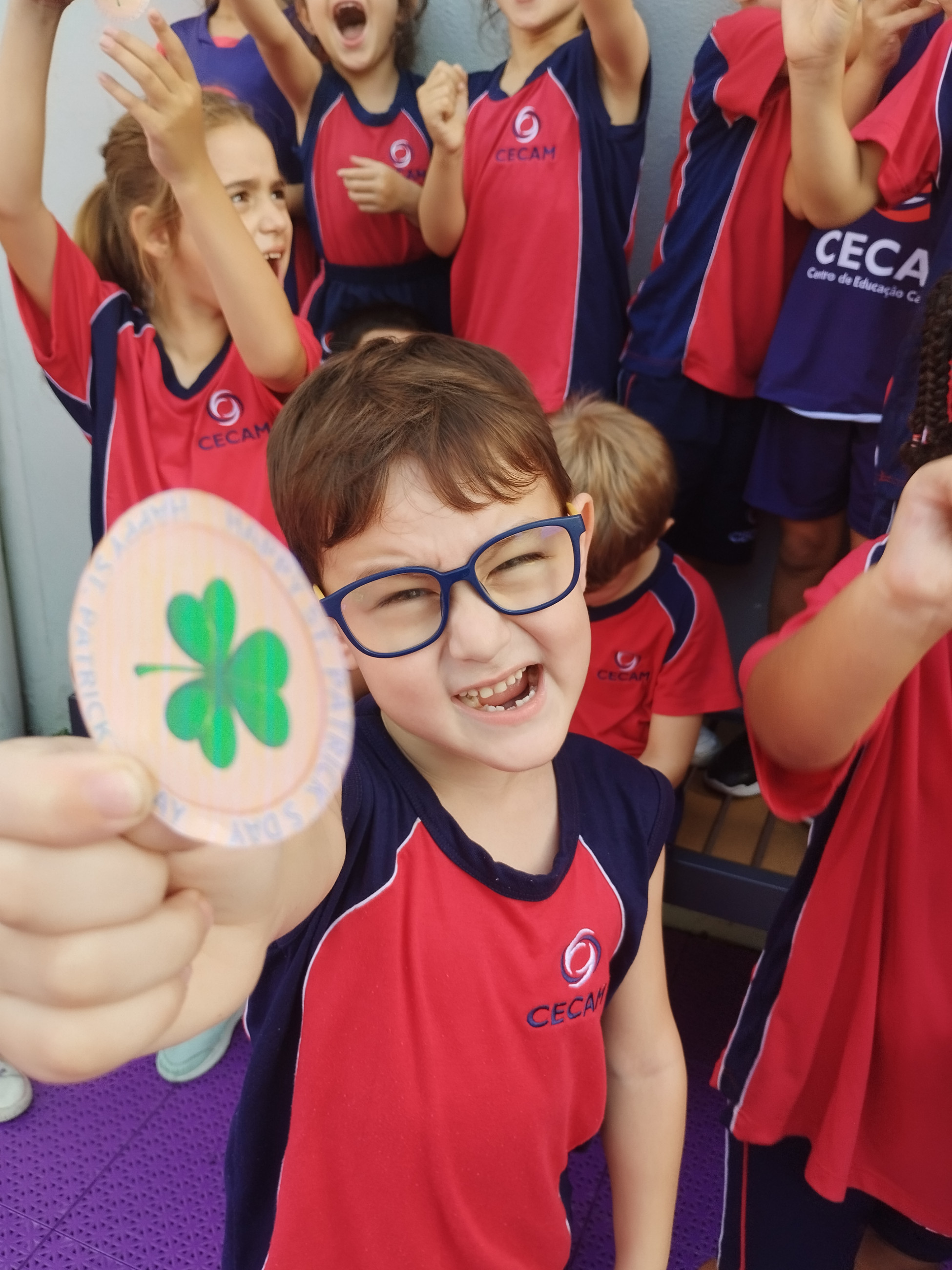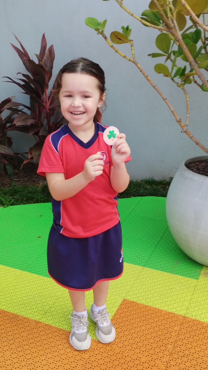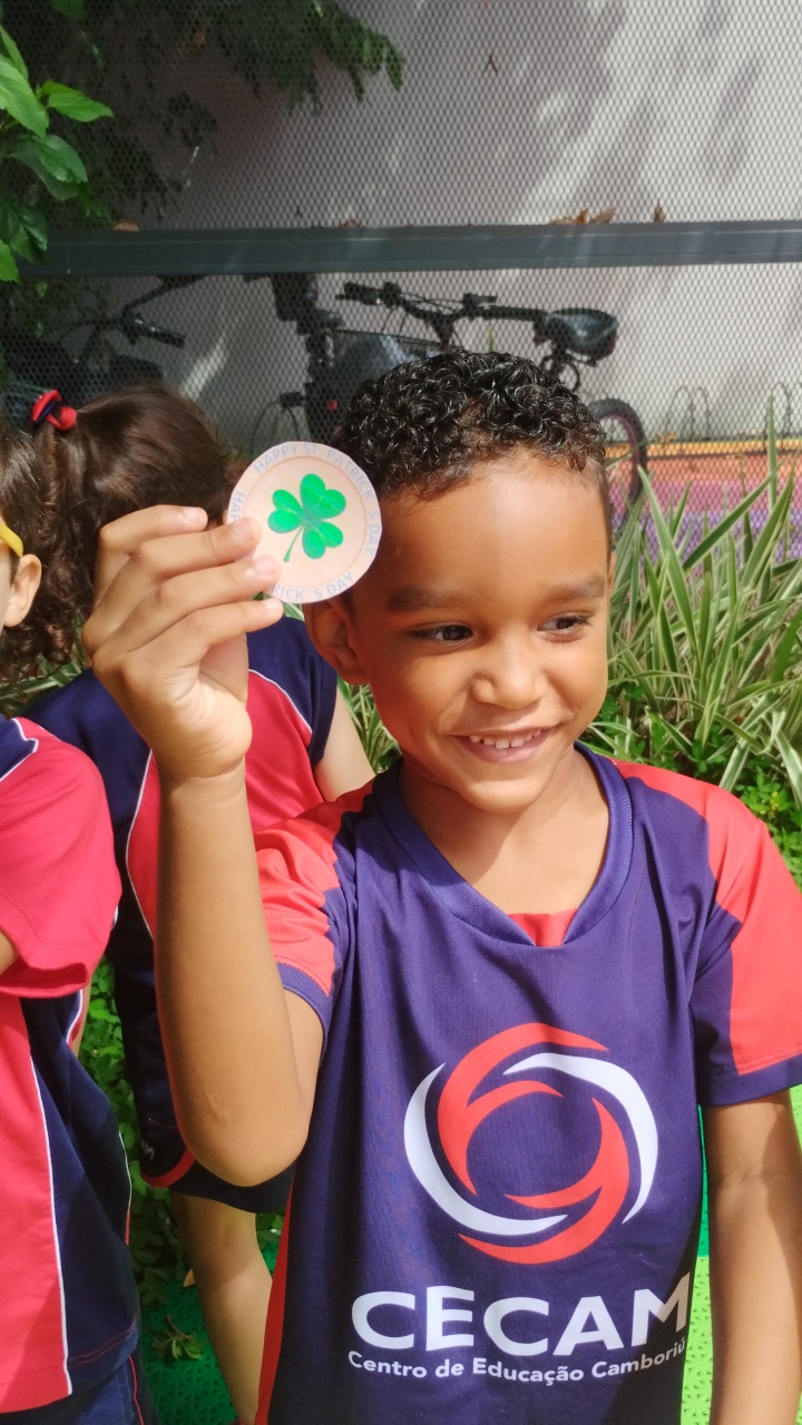 Para tornar a aprendizagem ainda mais envolvente, realizamos uma atividade no pátio da escola. Os alunos participaram de uma animada “treasure hunt”, na qual precisaram procurar por shamrocks escondidos pela área externa. A atividade estimulou a curiosidade, a atenção e o trabalho em equipe, além de forçar o contato com a língua inglesa em um ambiente dinâmico.