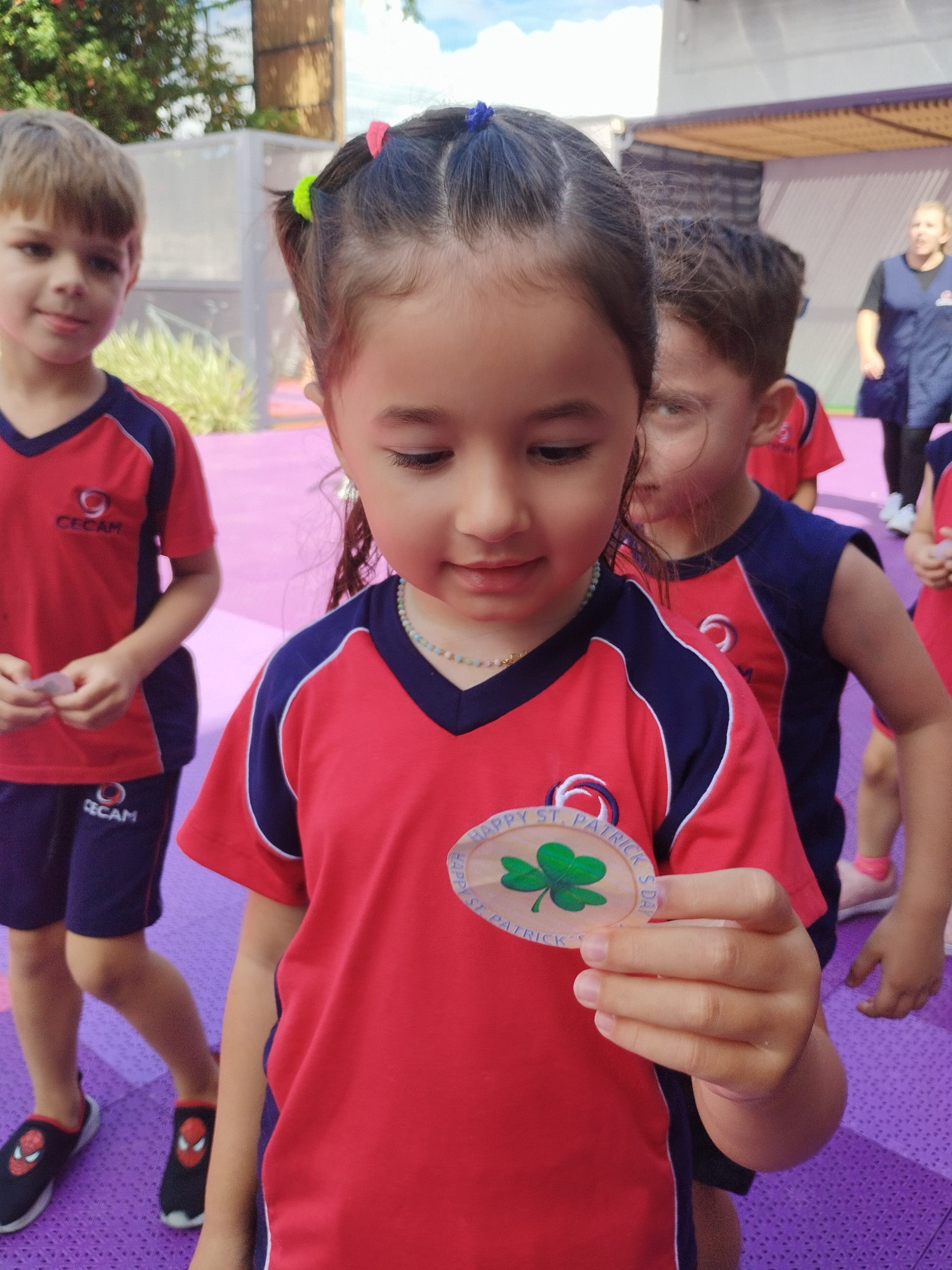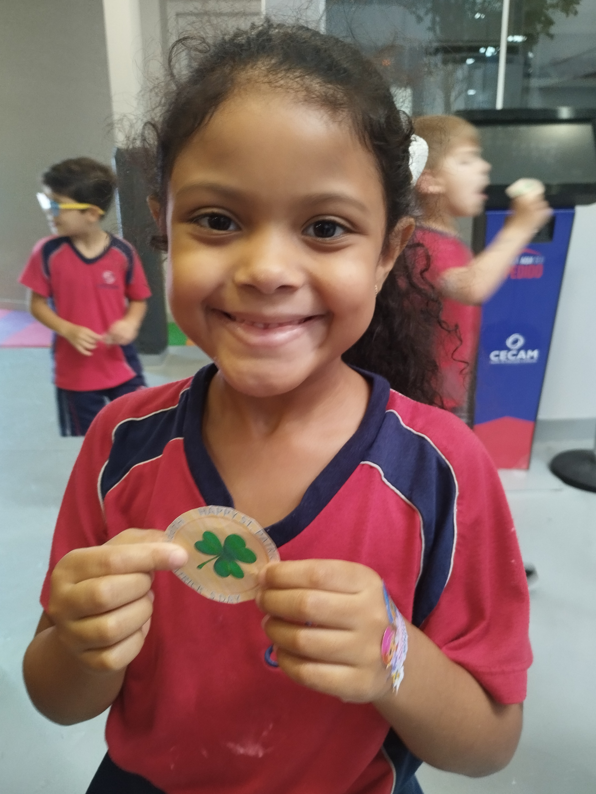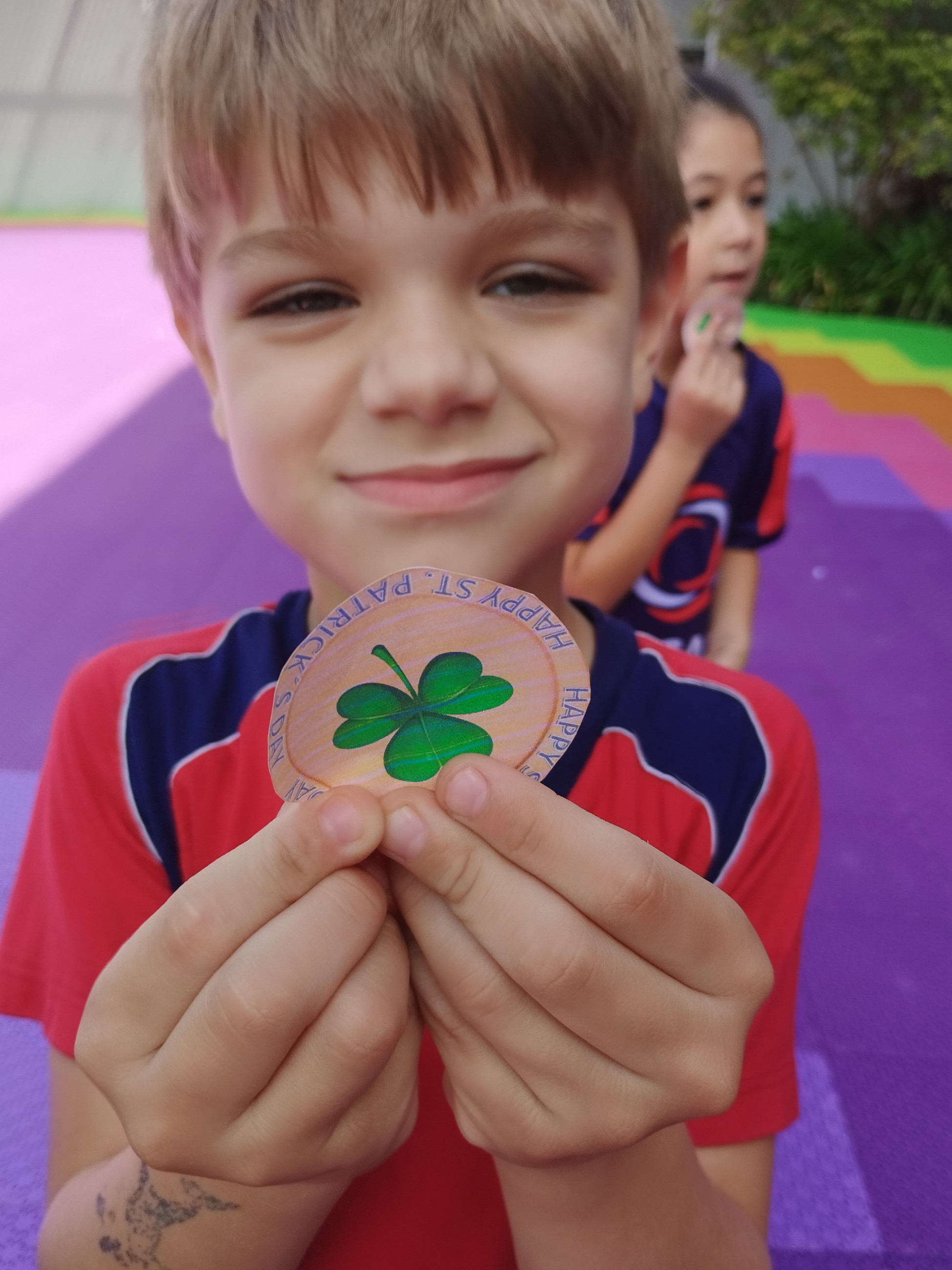 Para tornar a aprendizagem ainda mais envolvente, realizamos uma atividade no pátio da escola. Os alunos participaram de uma animada “treasure hunt”, na qual precisaram procurar por shamrocks escondidos pela área externa. A atividade estimulou a curiosidade, a atenção e o trabalho em equipe, além de forçar o contato com a língua inglesa em um ambiente dinâmico.